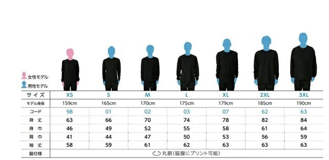 Tシャツはプリントスター製です。サイズスペックは添付をご確認下さい。