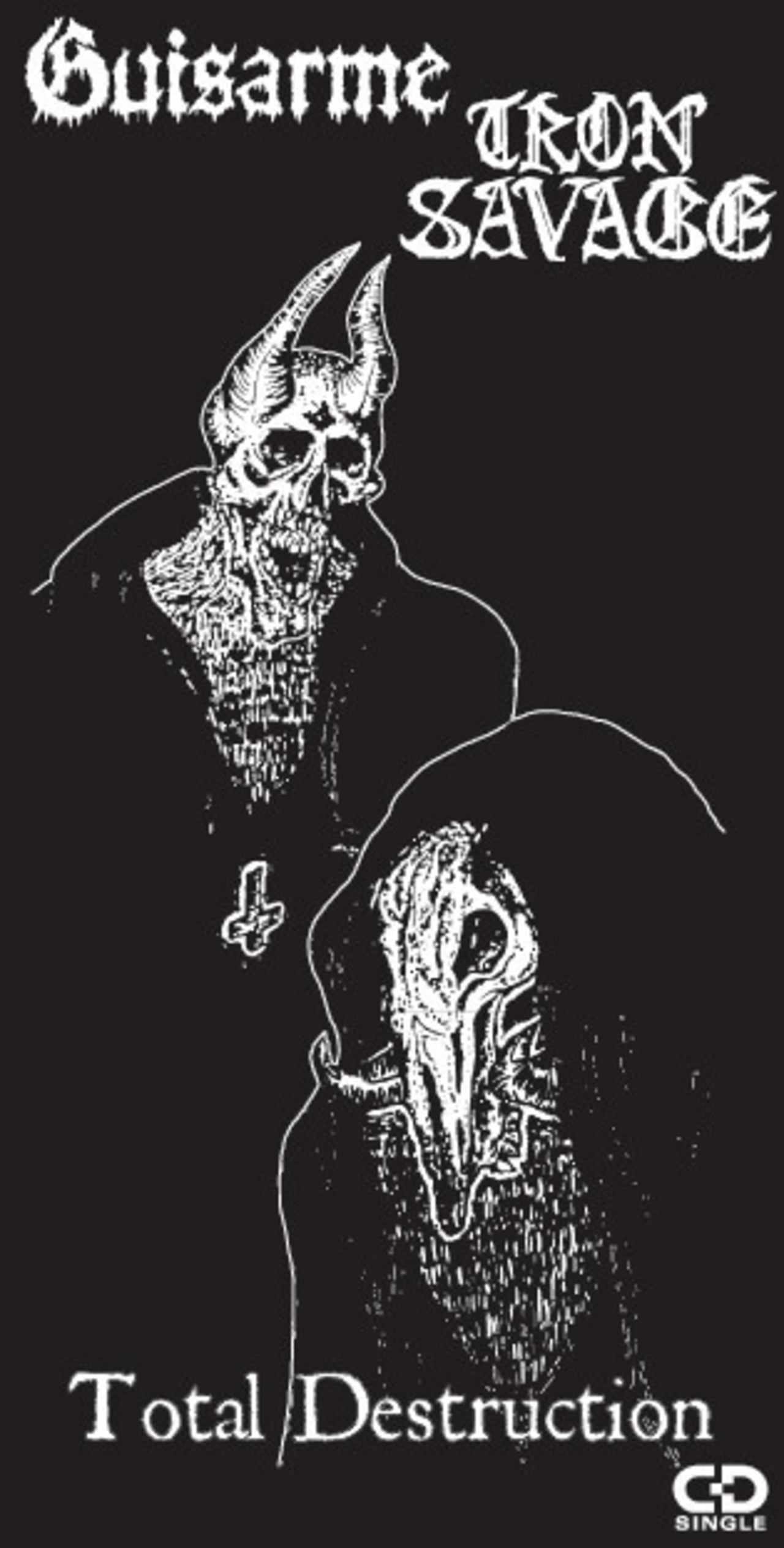 RETURNのDr、DeathcrushによるHellhammer,初期Celtic Frost直系のウォーシップ・スラッシュ・メタルGUISARMEとABIGAIL、BARBATOS他でお馴染みのSuzuki Yasuyuki氏によるショートカットブラックメタルIron Savegeのスプリット短冊8cmCDがHELLO FROM THE GUTTERより限定100枚でリリース!! Guisarme5曲、Iron Savage17曲の合計22曲収録。